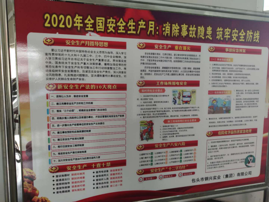 根據(jù)《包頭市安全生產(chǎn)委員會關(guān)于開展2020年“安全生產(chǎn)月”和“安全生產(chǎn)萬里行”活動的通知》(包安委會發(fā)﹝2020﹞4號文件),集團(tuán)公司制定了“安全生產(chǎn)”的活動方案,進(jìn)一步加強(qiáng)和全面落實(shí)全員安全生產(chǎn)責(zé)任制,廣泛傳播集團(tuán)公司安全文化。通過深入開展主題宣講活動,積極組織“6?16”宣傳咨詢?nèi)栈顒?,開展安全生產(chǎn)應(yīng)急救援演練活動,推進(jìn)安全宣傳工作等活動形式,牢固樹立安全發(fā)展理念,提升員工安全意識和素養(yǎng),確保安全生產(chǎn)持續(xù)穩(wěn)定。